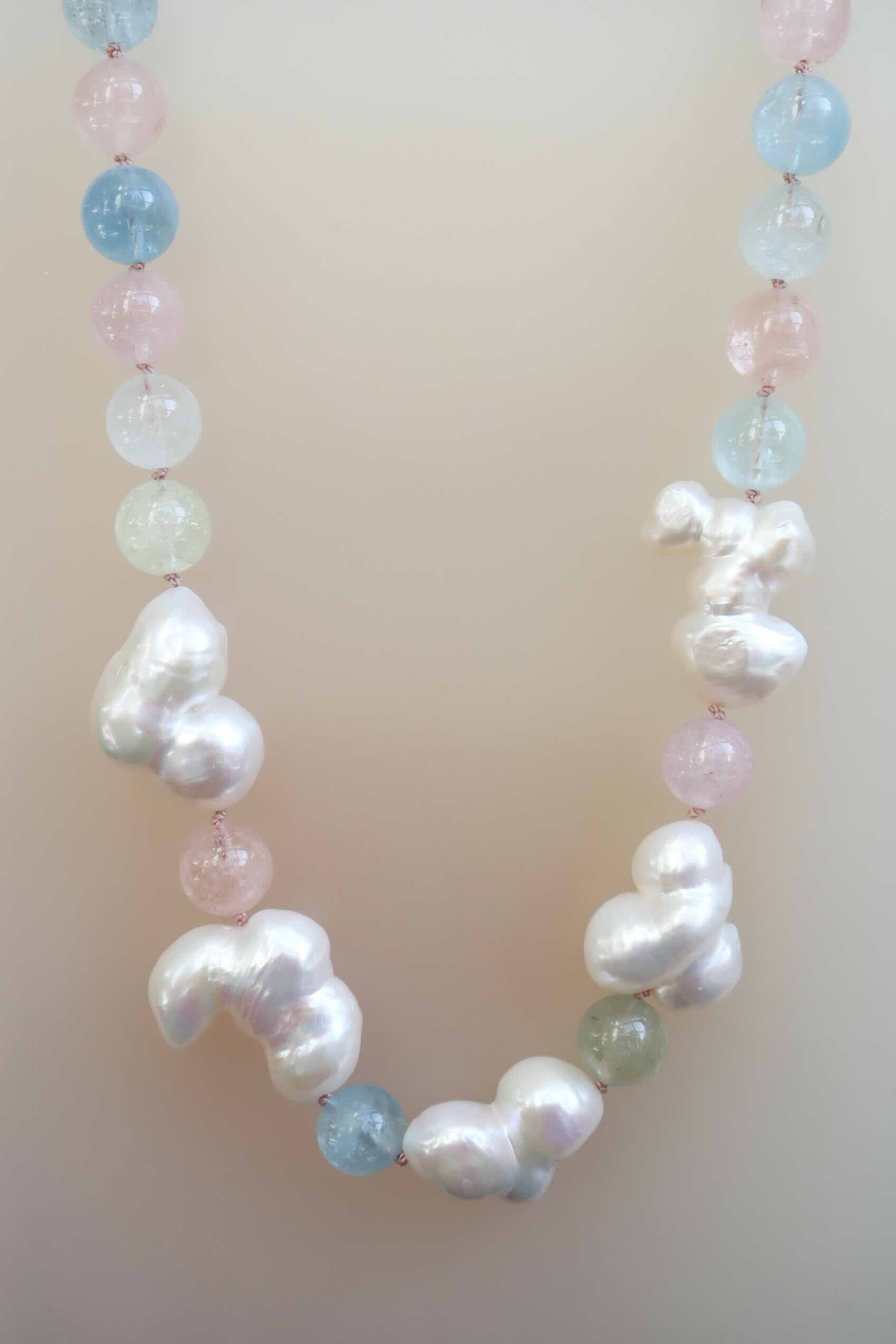 Een smashing combinatie van beryl in multi colors met popcorn zoetwaterparels! De sluiting is een 14 karaat magneet bolslot.
