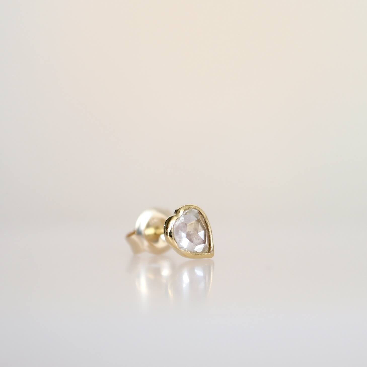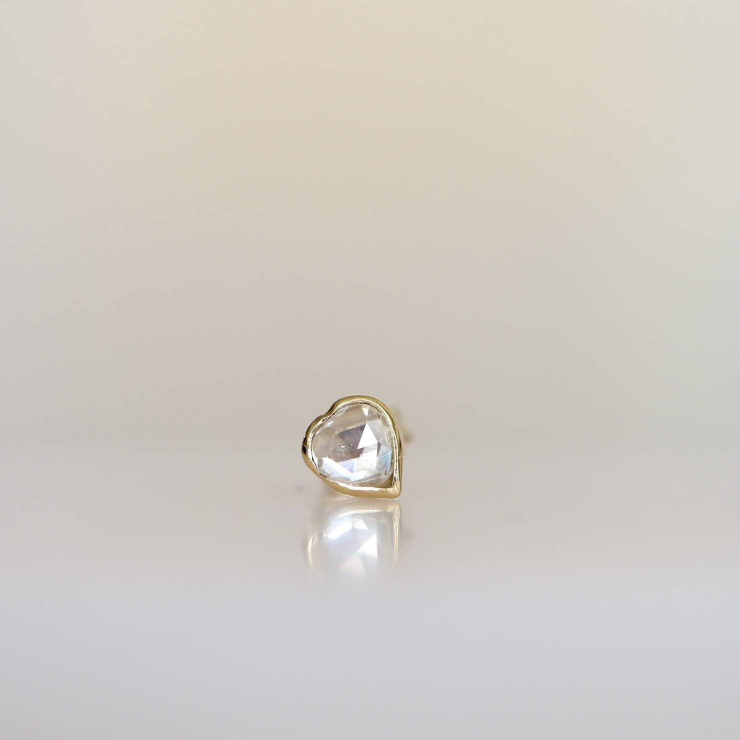 Een Antique Diamond in de vorm van een hartje. Deze enkele oorsteker is een echte eyecatcher met een vurige sprankeling. Ook heel mooi te combineren met andere enkele oorbellen uit onze collectie!