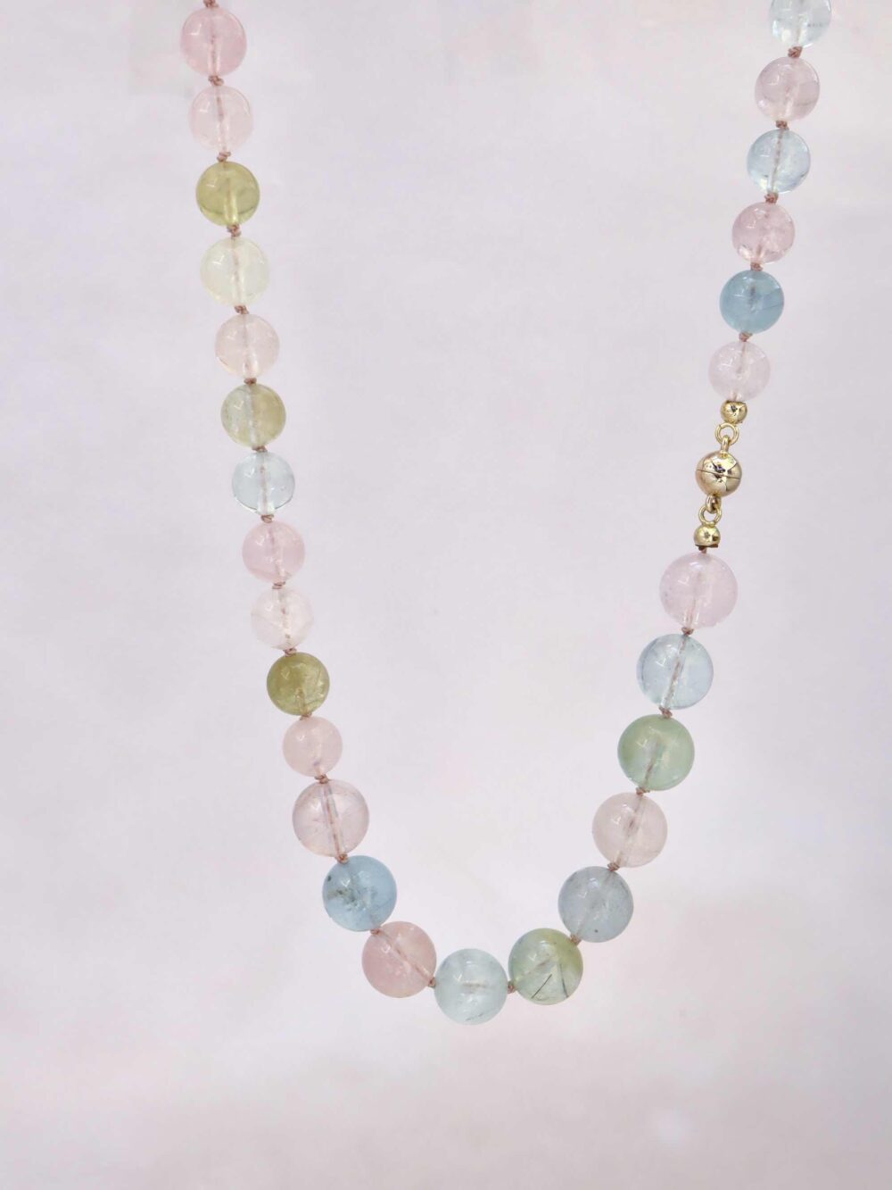 Een prachtig collier met mooie heldere beryl in de zachtste tinten.