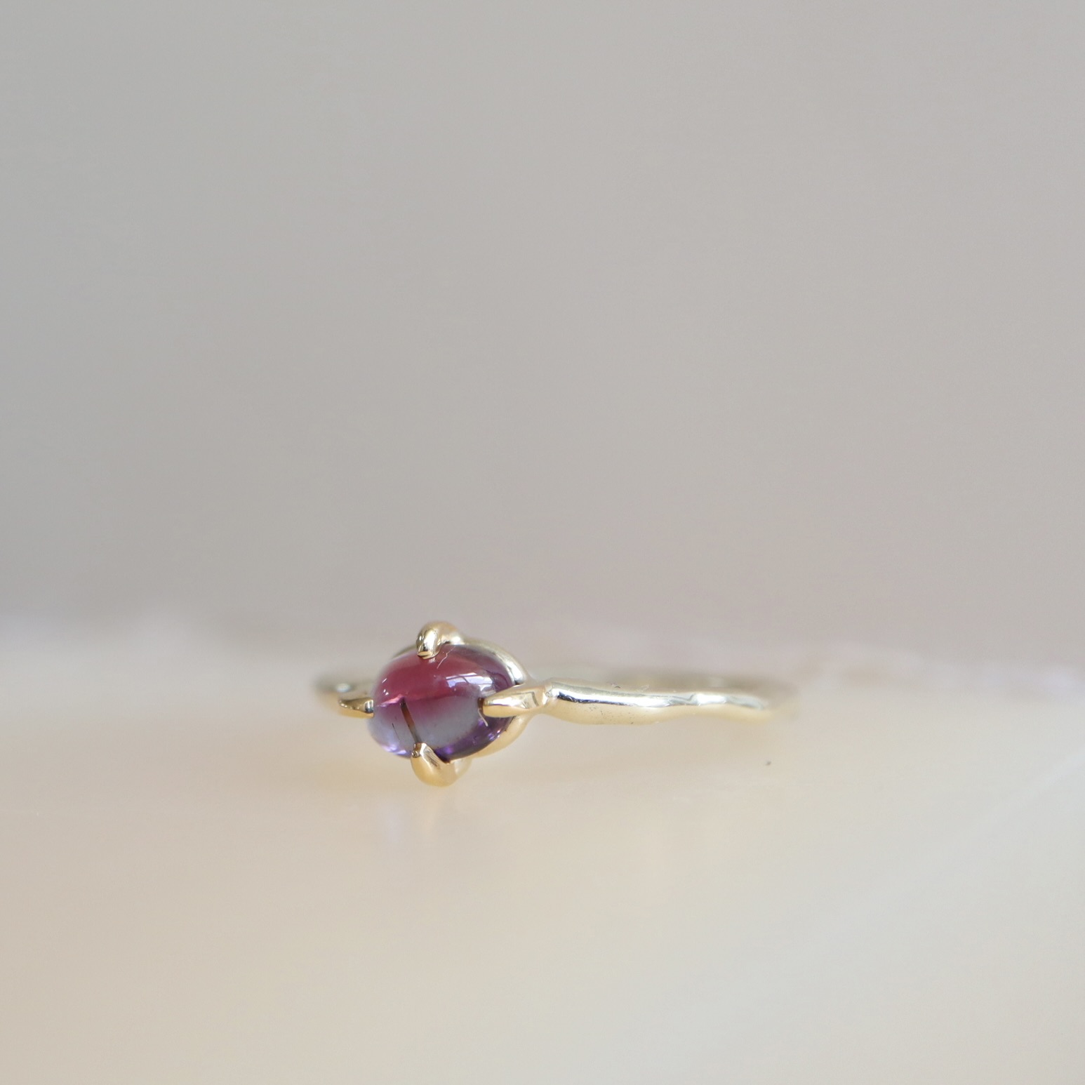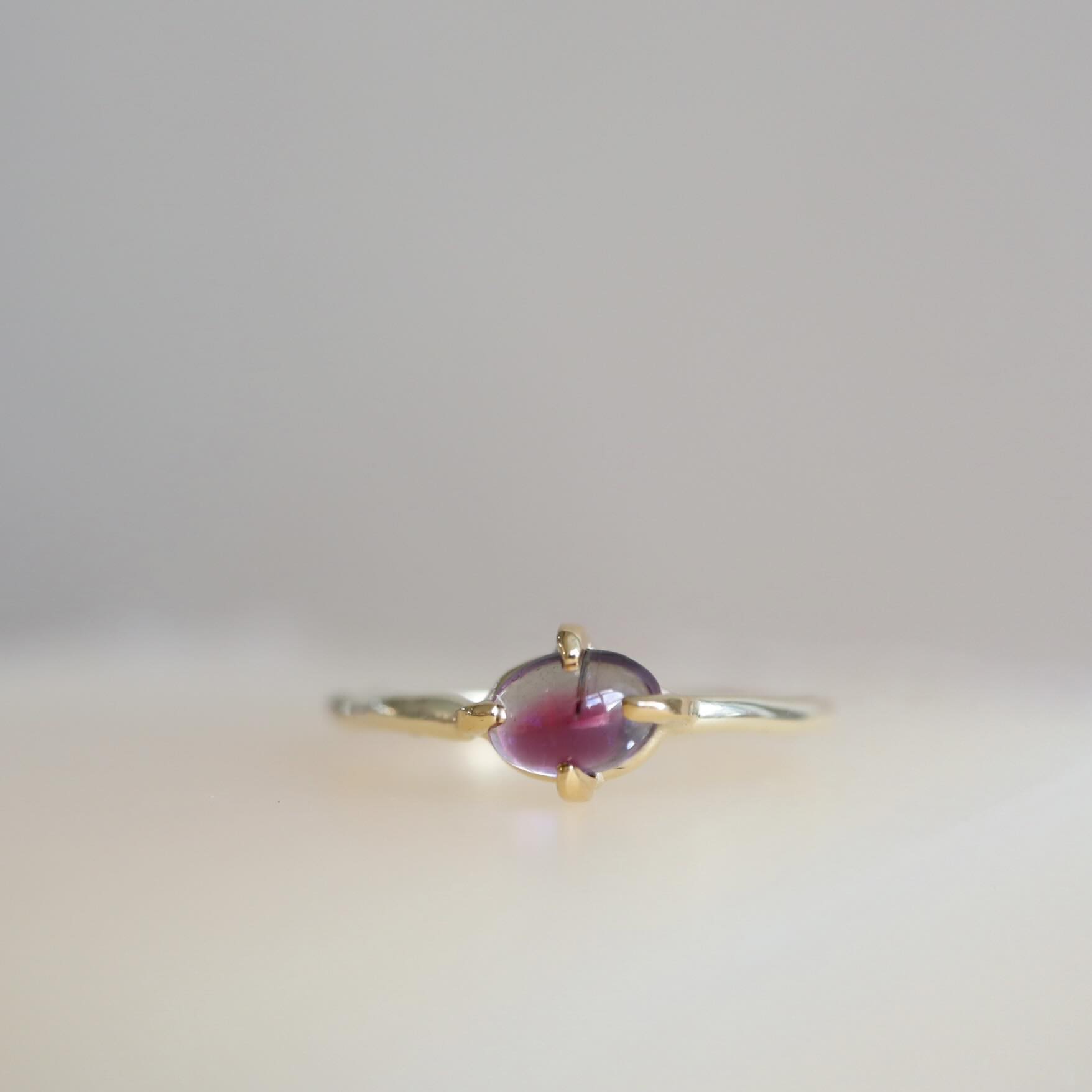 Betoverend gewoon! Een roze èn blauwe toermalijn. De tinten lopen door elkaar met een magisch effect. De toermalijn van 0.08 ct. is gezet in 22 karaat goud. De 14 karaat gouden ring heeft een grillige vorm.