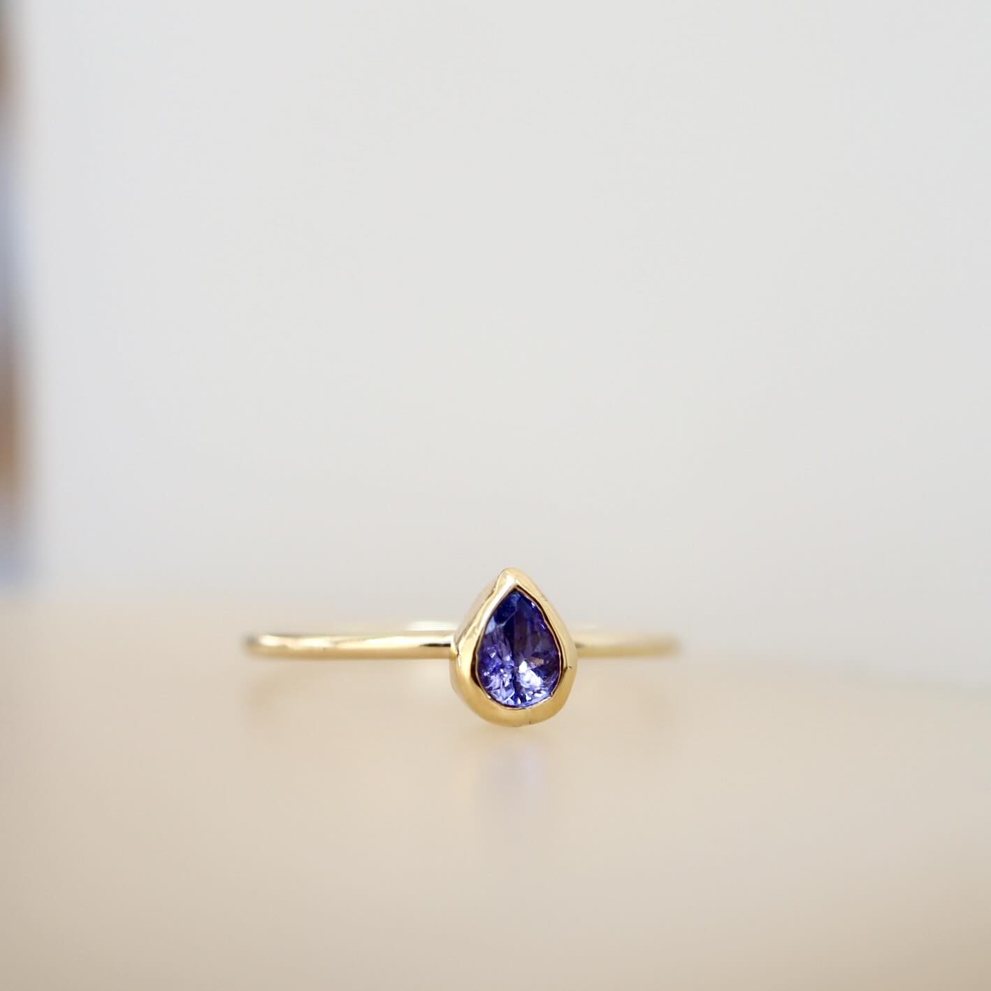 Een tanzaniet druppel, mega fonkelend en veel licht-donker effecten. De zetting is gemaakt van 22 karaat goud. De ring is gemaakt van 18 karaat goud.