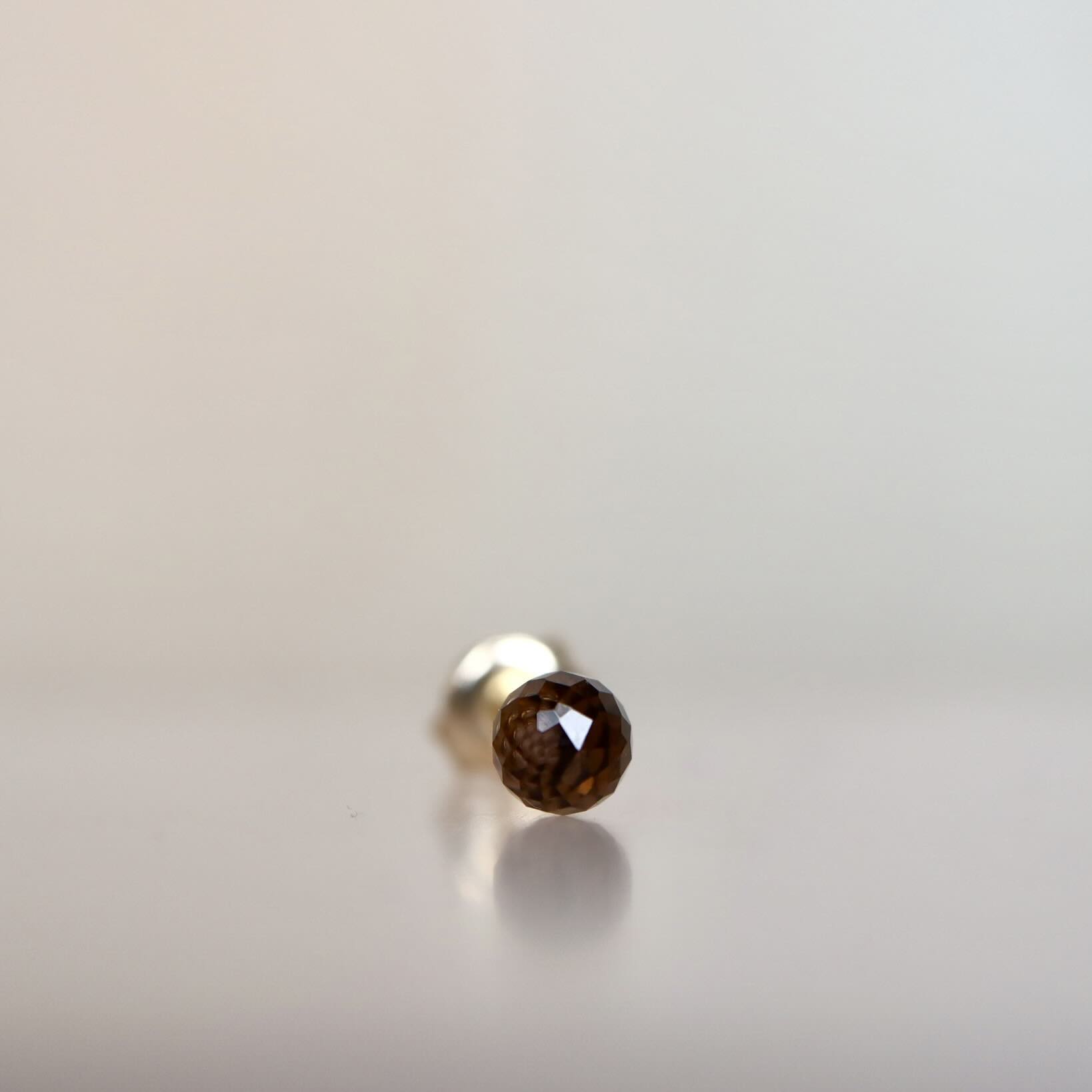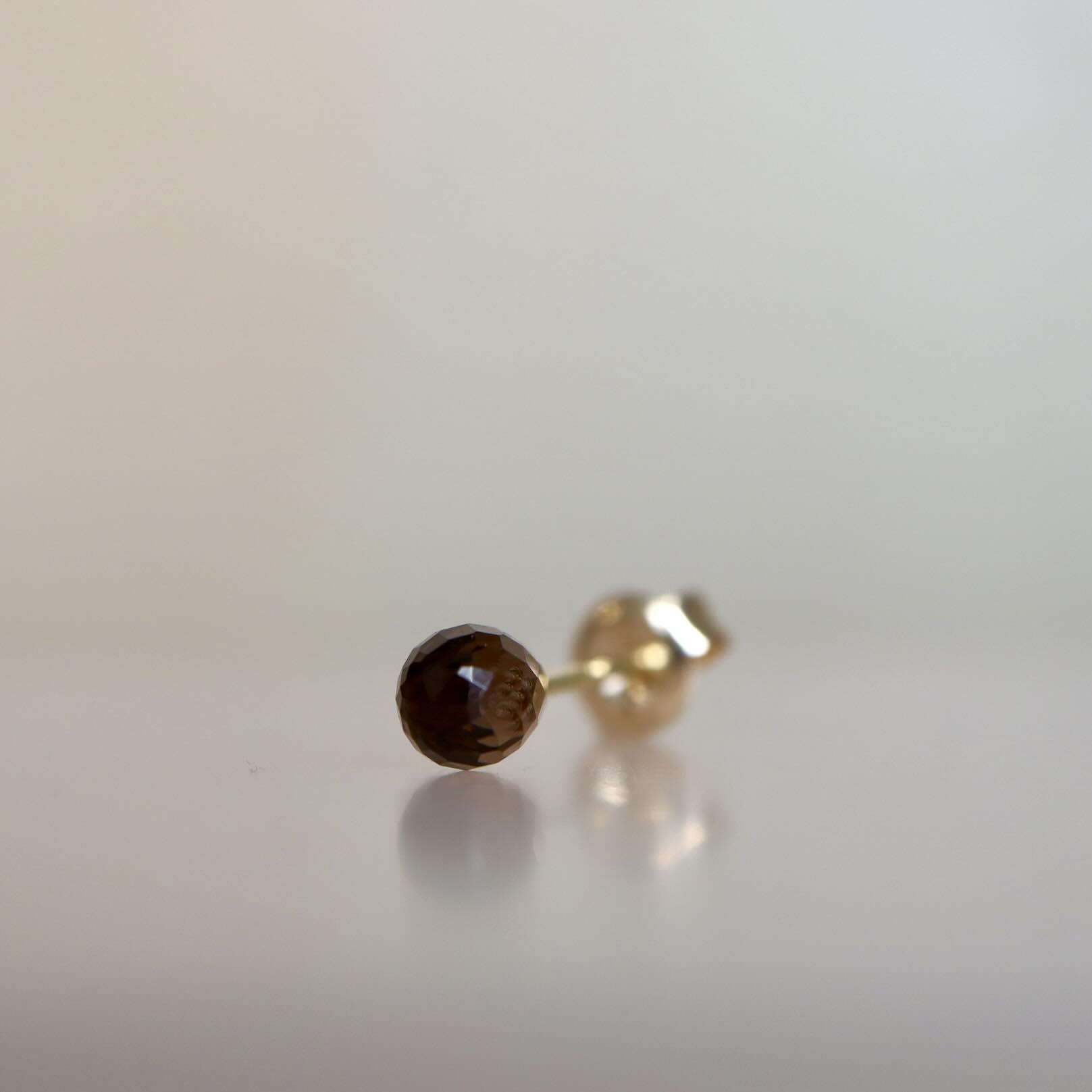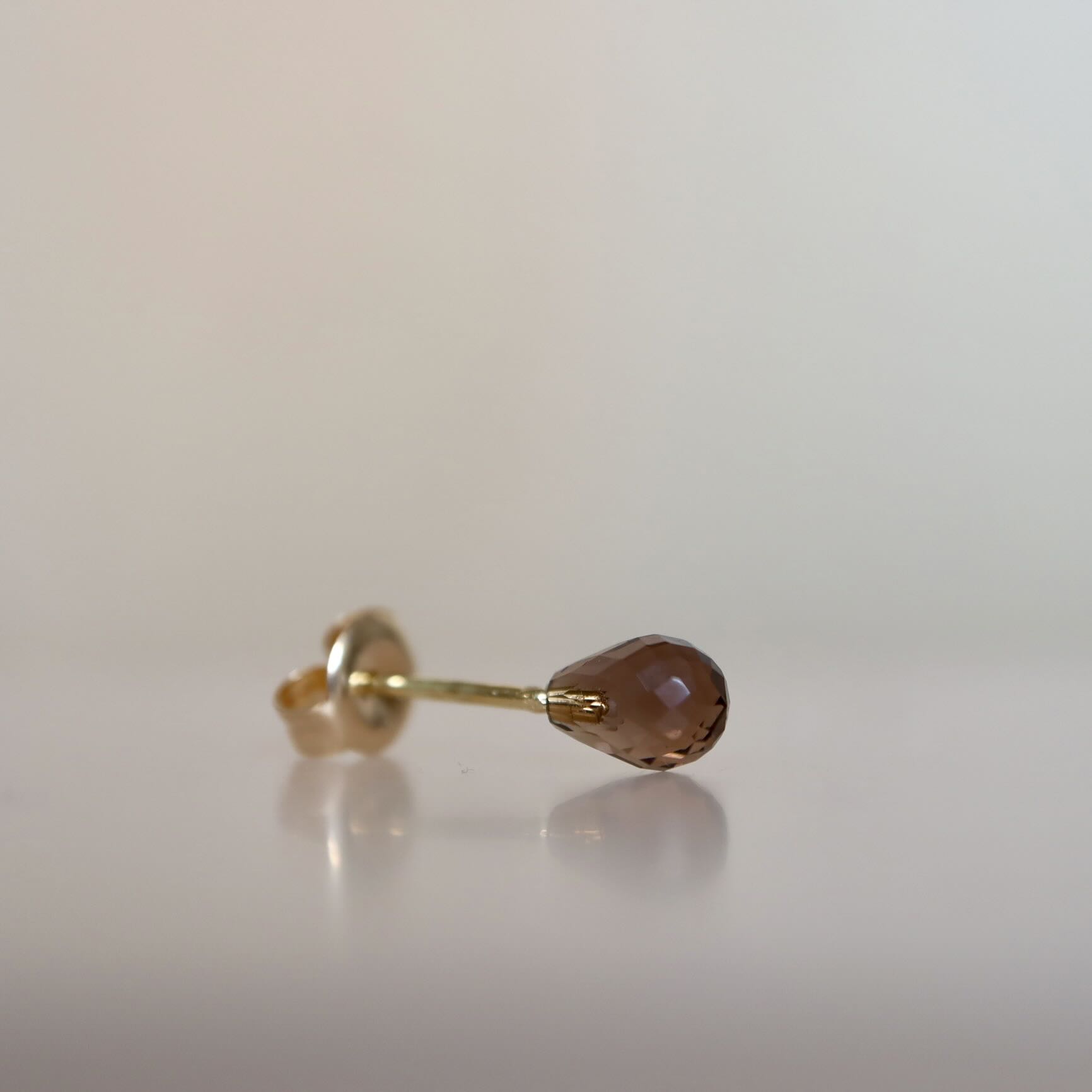 Een gefacetteerde, rookkwarts druppel. Donker sprankelend en chic stoer. Het is een enkele steker, gemaakt met 18 karaat goud.