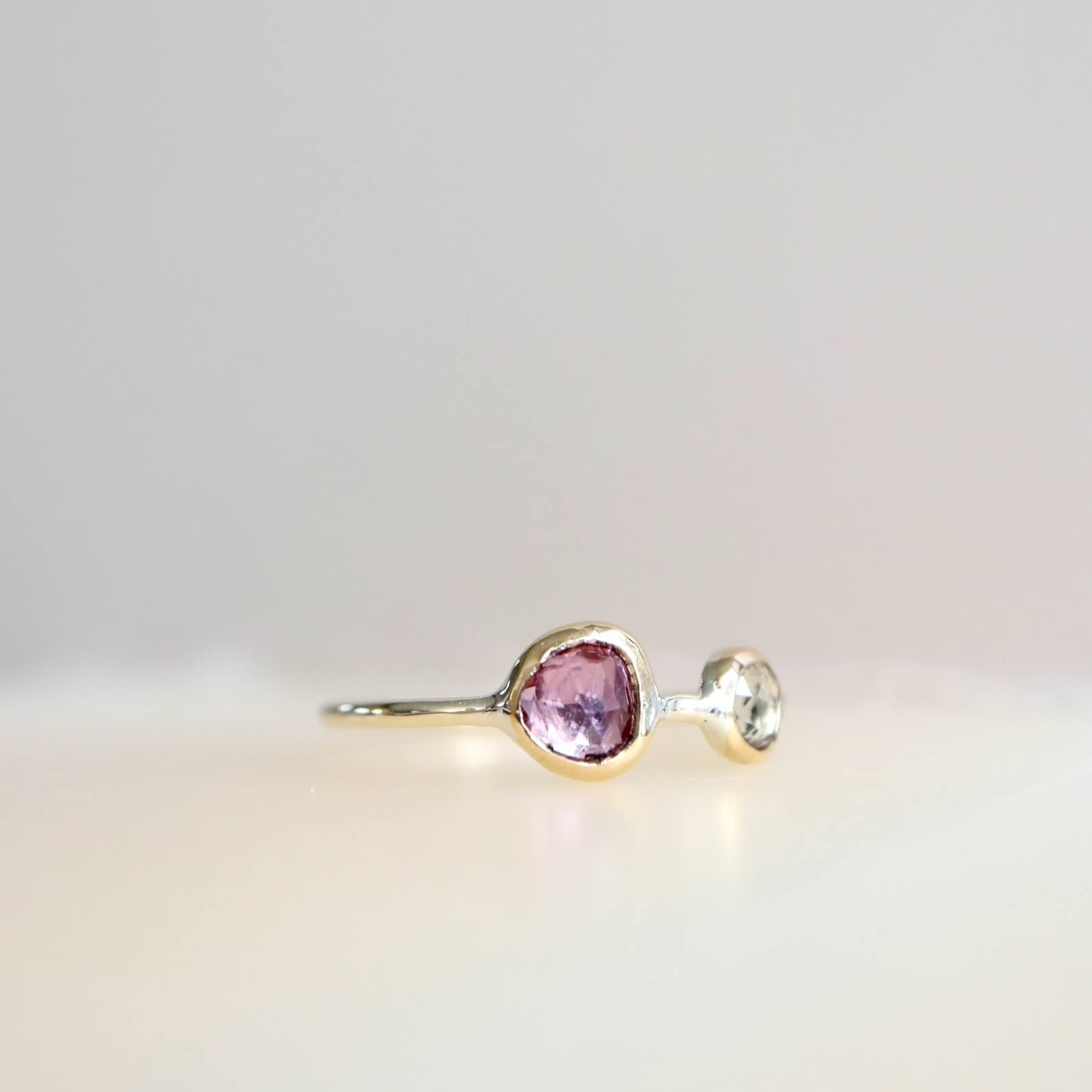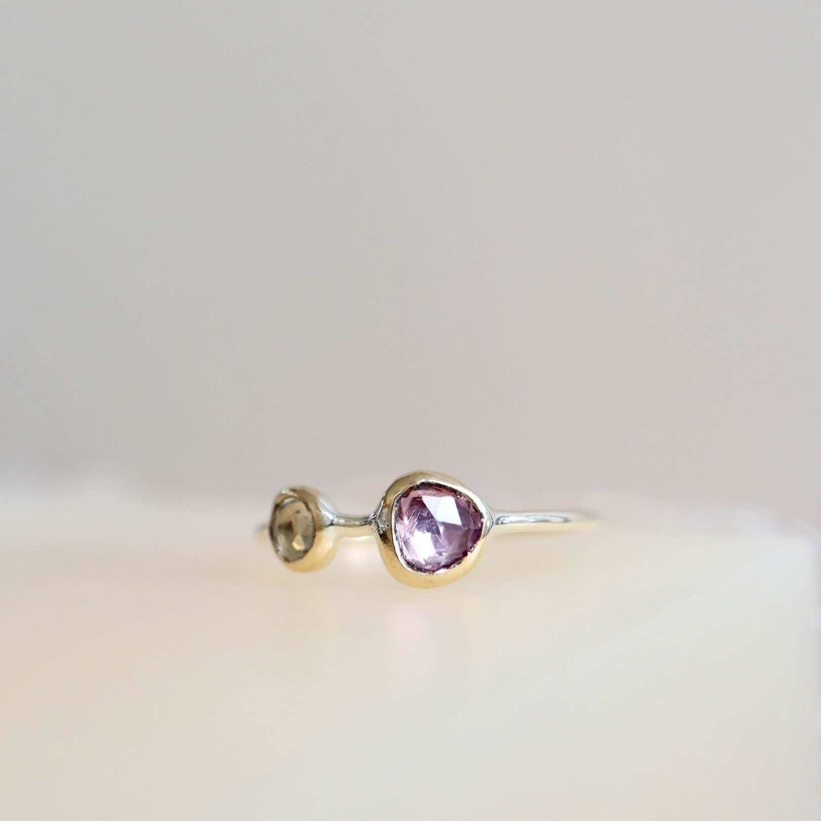 Roze toermalijn en lichtgele saffier, een indrukwekkend, sprankelende ring! Gemaakt van 22 en 14 karaat goud.