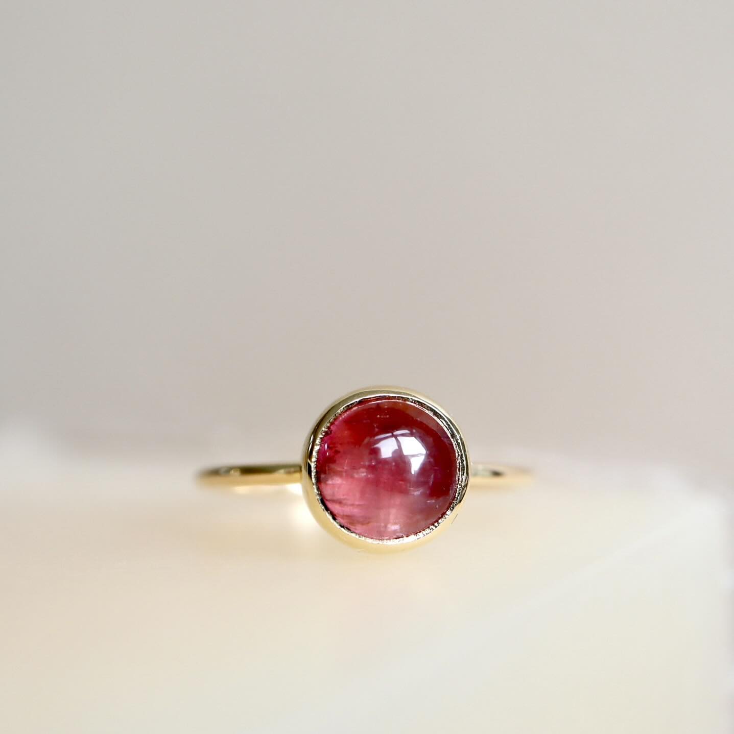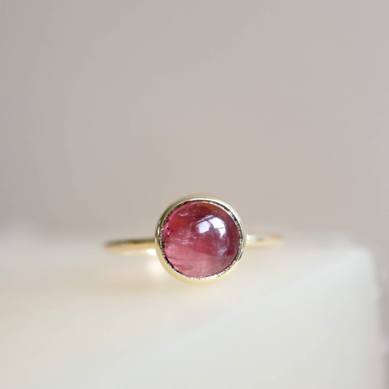 Een siroop roze toermalijn, oneindig zacht van tint. De toermalijn is 2.42 ct. De ring is gemaakt van 18 karaat goud.