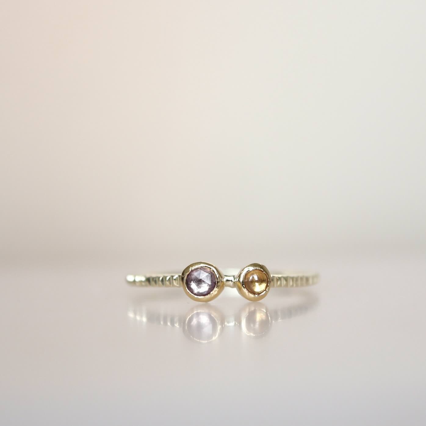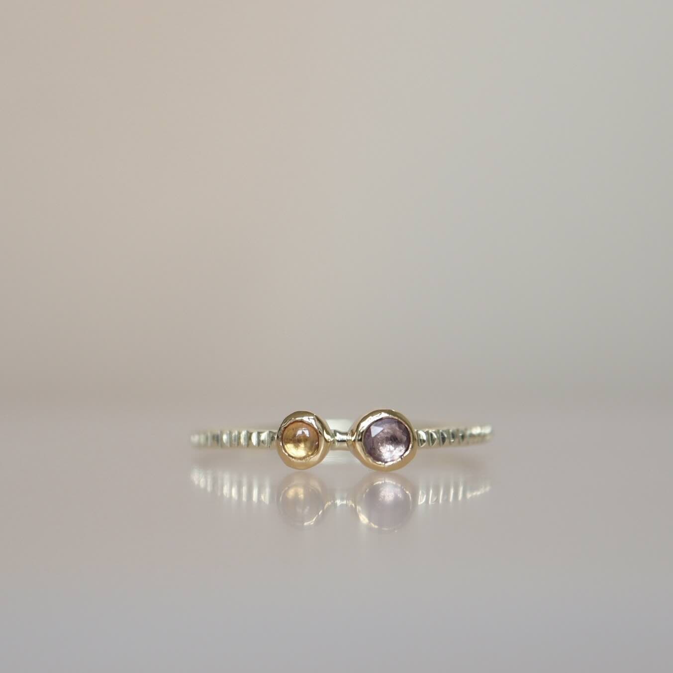 Saffieren in helder oranje en rosecut roze! Héél elegant en een fantastische kleurcombinatie. De ring is gemaakt van 22 en 14 karaat goud.
