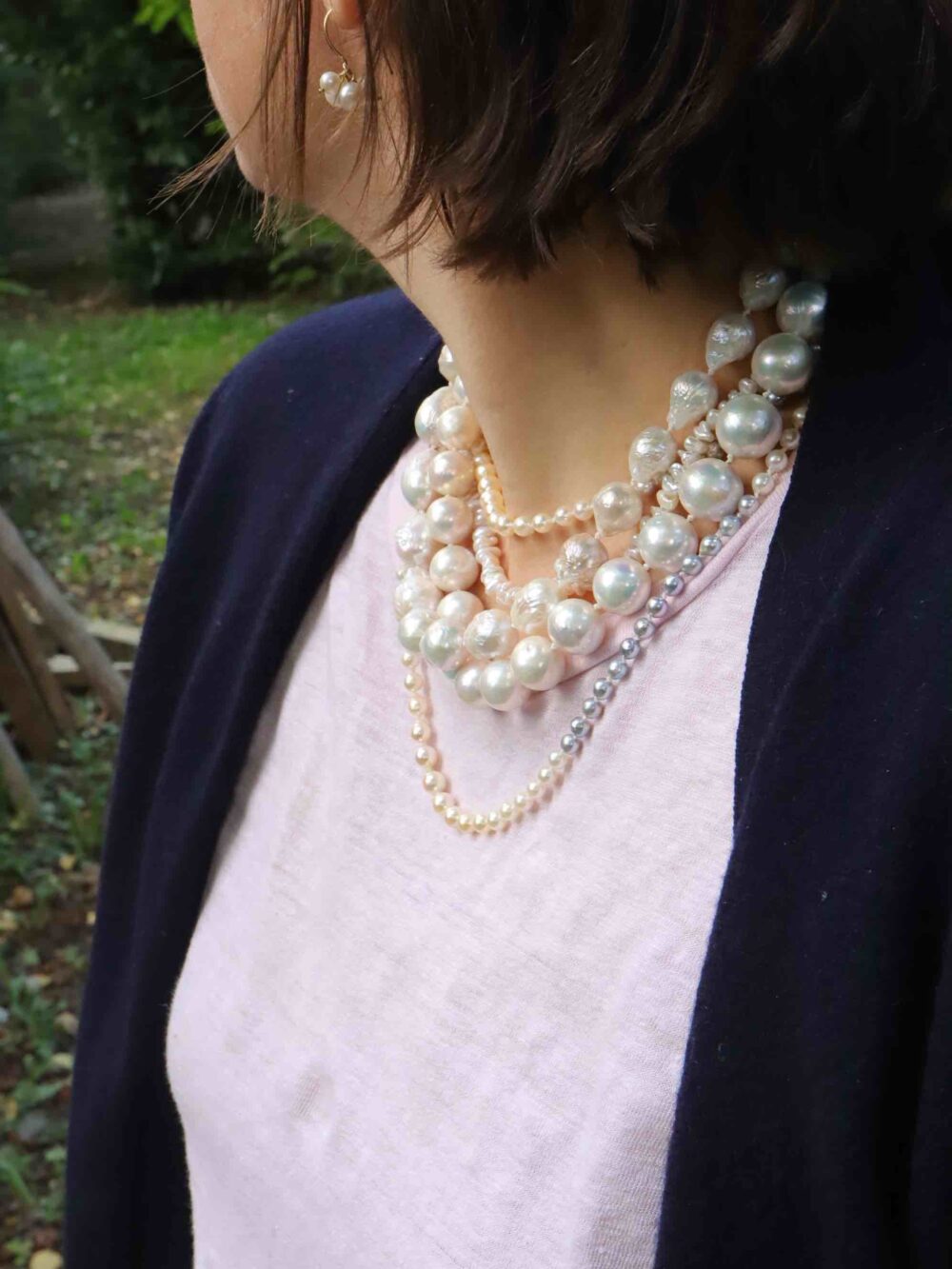 14 krt.roodgouden collier met zachtroze ronde zoetwaterparels van 8.5mm met