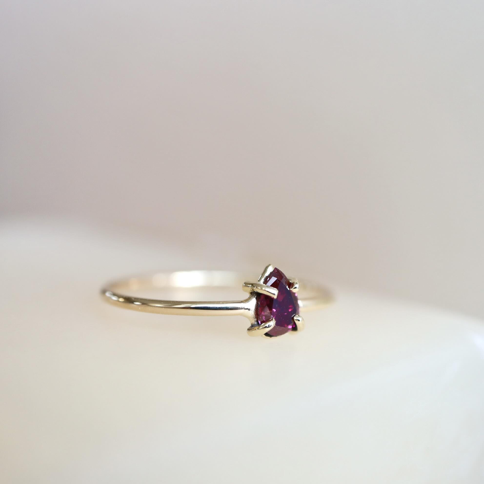 Een druppel diamant in violet tint! Je wil erbij zijn wanneer de diamant het licht opvangt, zó mooi en intens van kleur en flonkering. De fancy diamant is 0.37 ct. De ring is gemaakt van 18 karaat goud.