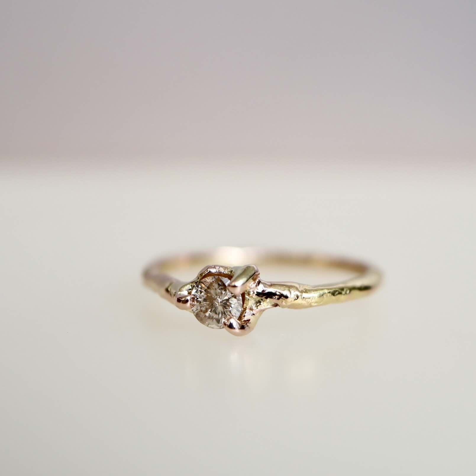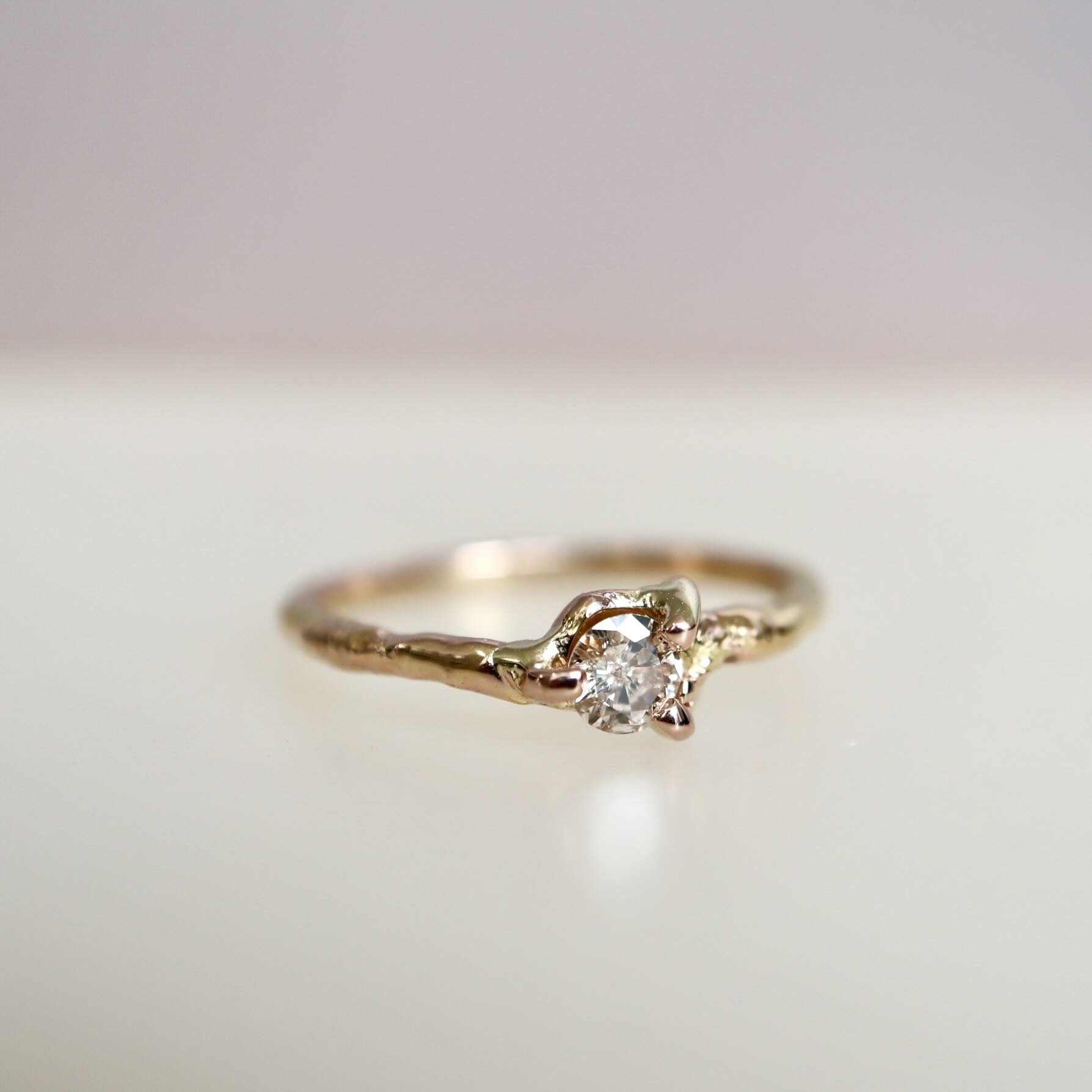 Een sprankelende, briljant diamant die op een prachtige manier versmolten in de ring ligt en met pootjes vastgehouden wordt. Gemaakt van 14 karaat roségoud.