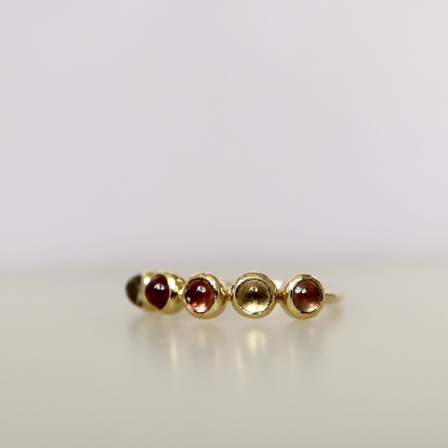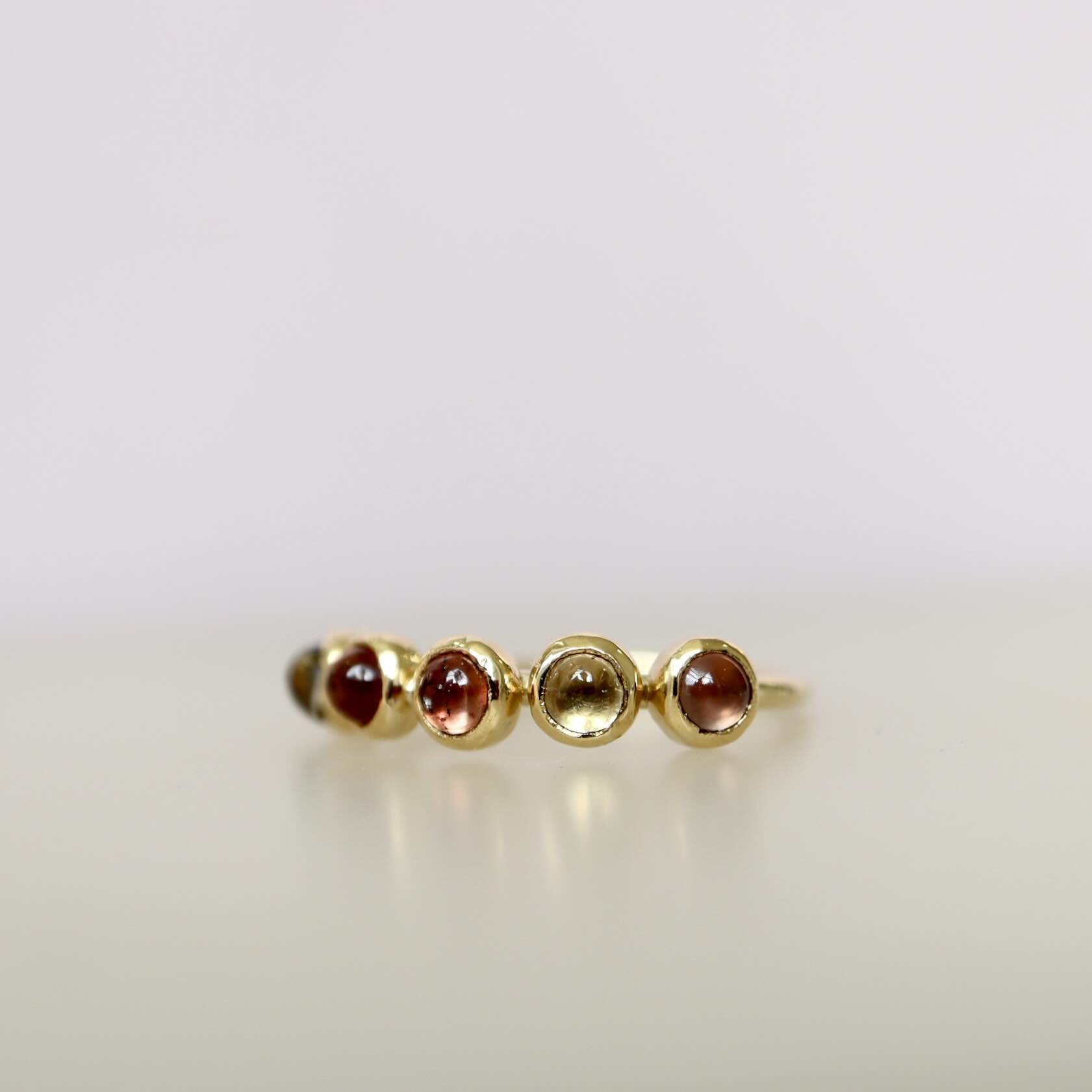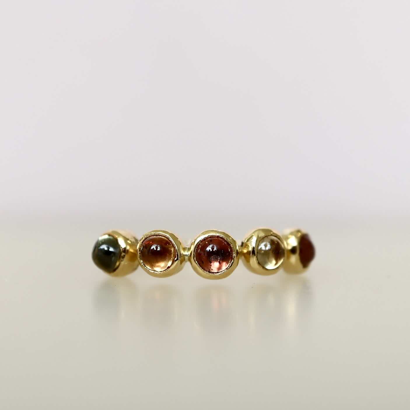 Een beauty met een verrassend volume. Doordat de saffieren de hele bovenkant van de vinger omvangen springt de ring gelijk in het oog! De zachte siroop-achtige tinten maken het tot een elegant geheel.