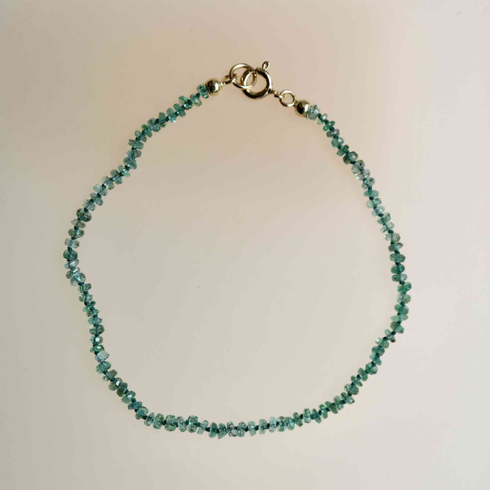 Een armbandje met mega cute kleine smaragden! Prachtig in combinatie met de 18 karaat gouden sluiting. De totale lengte is 18 cm.