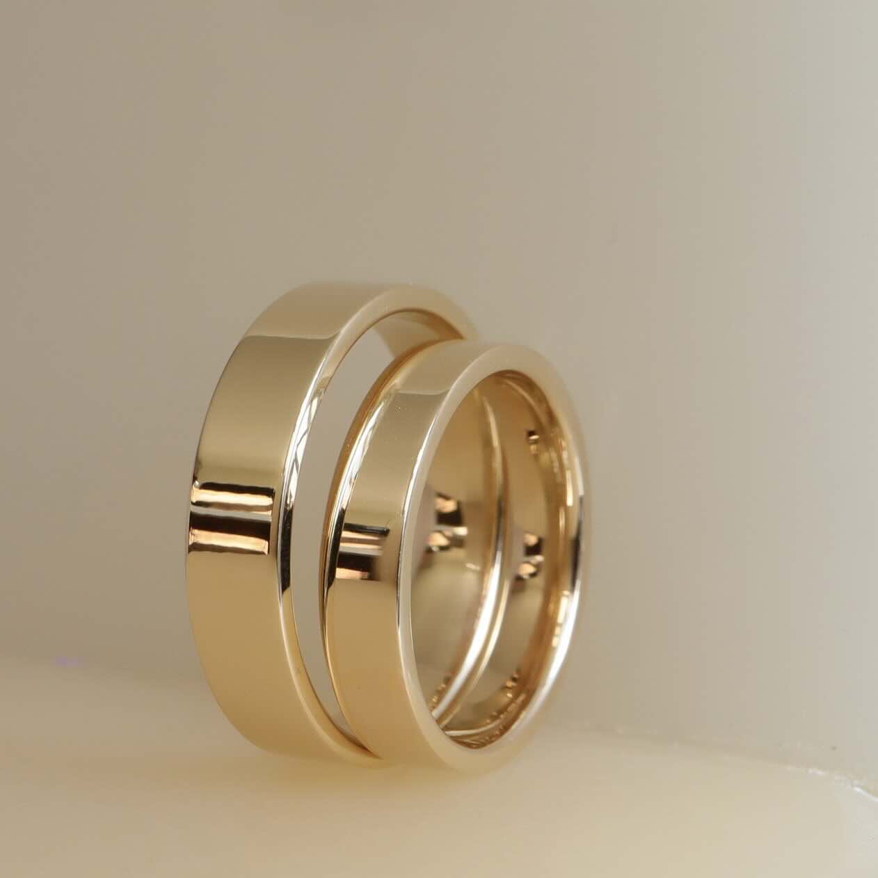 Een set gladde, gepolijste ringen. De rechte vorm maakt het tot een klassieke maar krachtige set! De binnenkant van de ringen is iets afgerond. Dit zie je niet aan de buitenkant, maar het maakt de ringen extra comfortabel in het dragen!