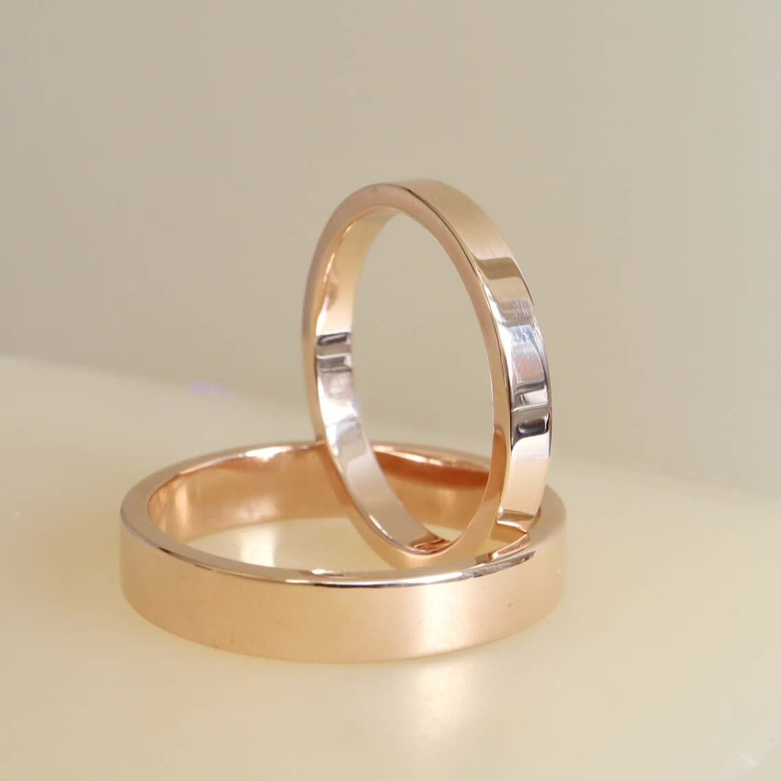14 karaat roodgouden ringen, strak van vorm en high in shine. Onmiskenbaar mooi!