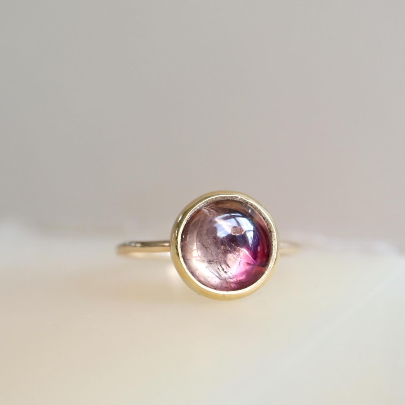 De tinten spatten je tegemoet vanuit deze toermalijn, zo helder, zo’n feestje! Meerdere kleuren in één fantastisch, mooie toermalijn. De ring is gemaakt met 22 en 14 karaat goud.