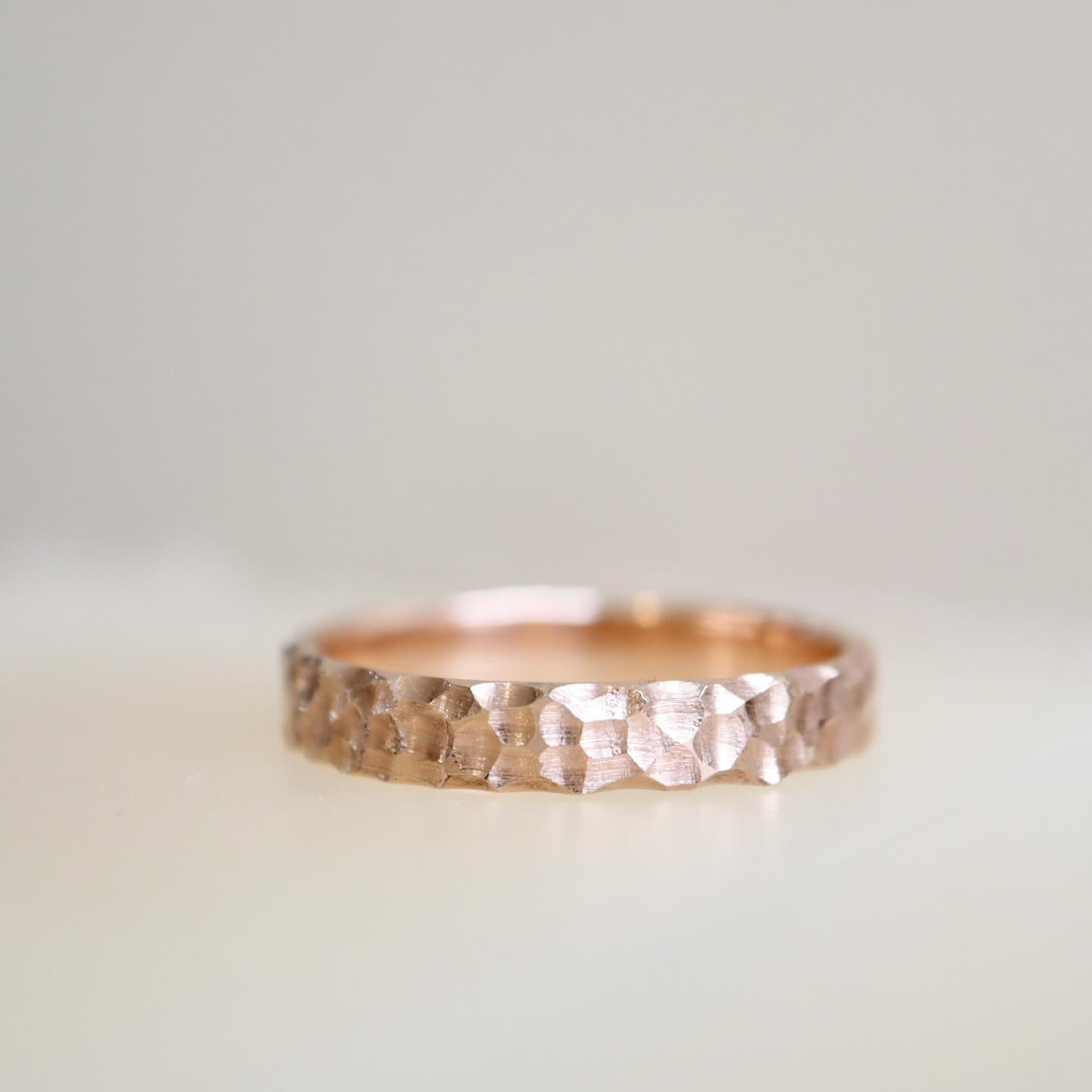 Een roodgouden ring met een robuuste bewerking. Het reliëf in de ring geeft een prachtige structuur en maakt glanzende en matte effecten. De ring is gemaakt van 14 karaat roodgoud.